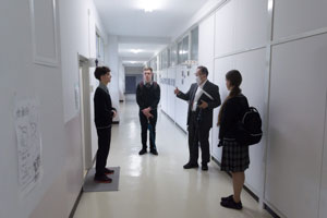 朝礼時に、生徒会よりリガからの皆さんを全生徒に紹介しました。その後、校内を見学し、HR教室に参加しました。体育や国語、世界史などの授業を受けました。1年3組の「コミュニケーション英語」の授業では、クラスのみんなで、留学生の名前を漢字にするという取り組みで交流を深めました。午後は、「人と防災未来センター」、「兵庫県立美術館」へ行き、神戸の歴史や文化を学びました。