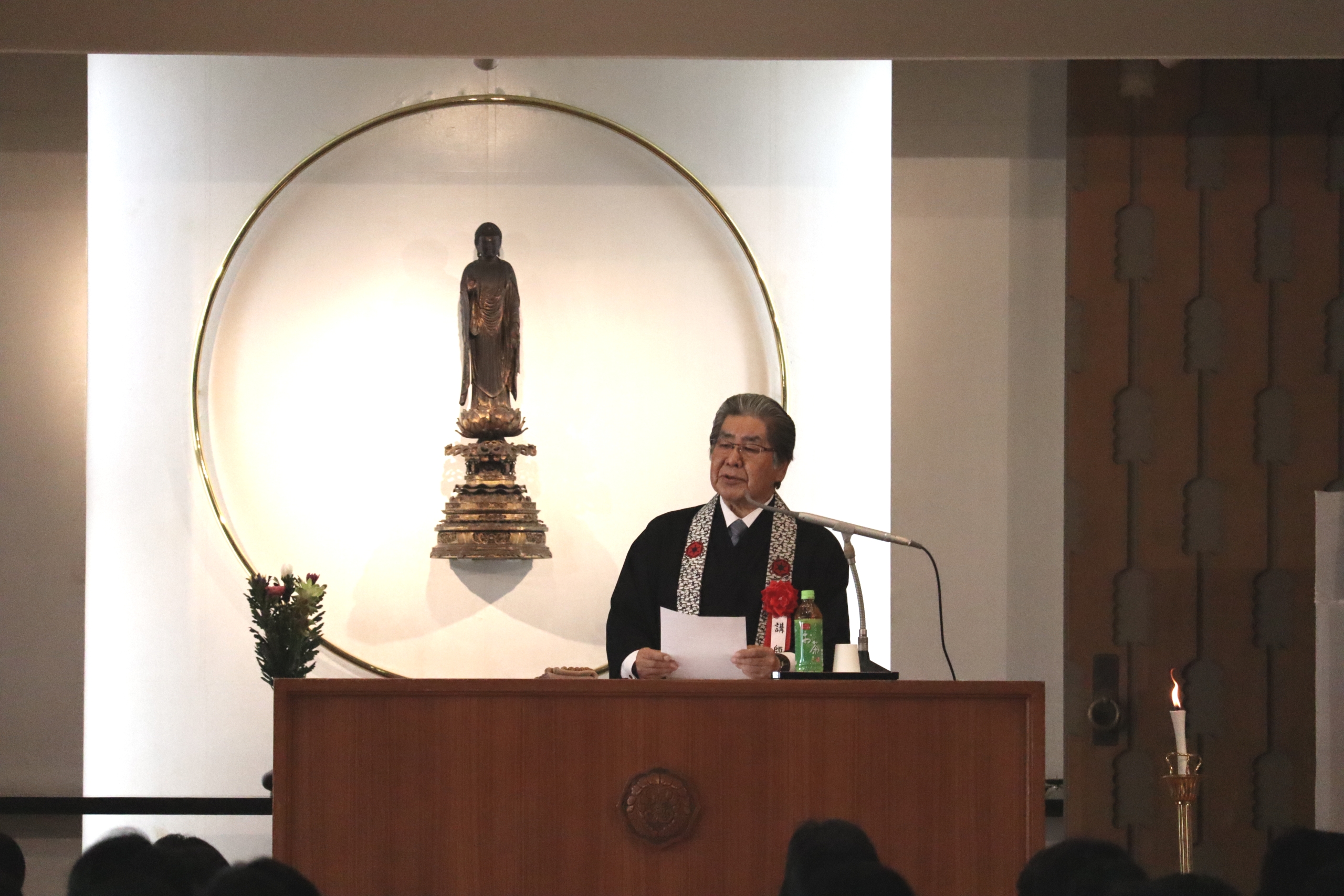 今年の追悼会では、龍谷大学名誉教授の川添 泰信(かわそえ たいしん)先生をお招きし、「響き合うこころ」という題でご講話をしていただきました。