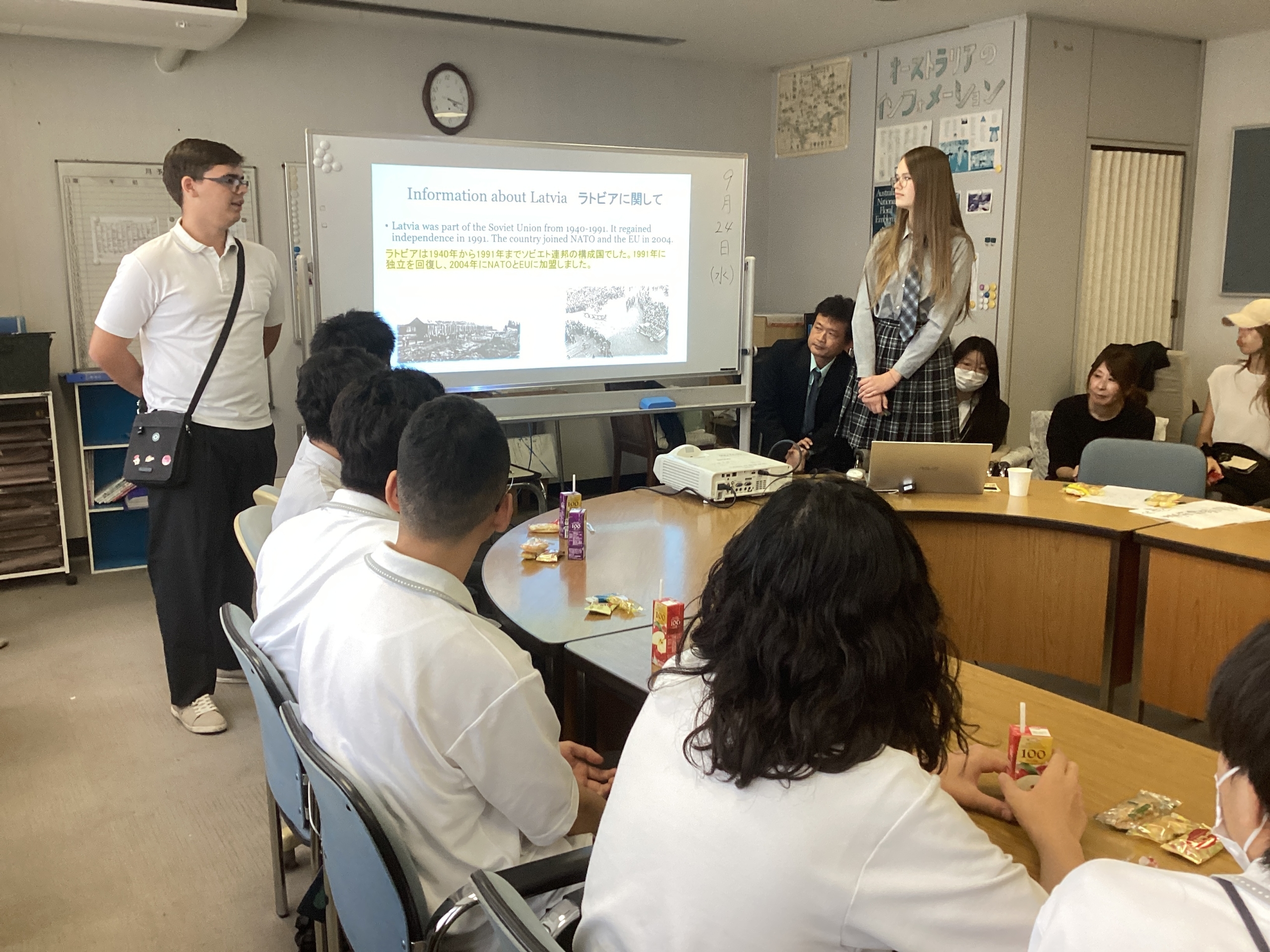 先日、校内で留学サロンが行われました。今回のゲストはラトビアからの交換留学生です。神戸龍谷高校は、ラトビア・リガ市に位置する「リガ文化学校」と提携校として、長年交流を続けています。