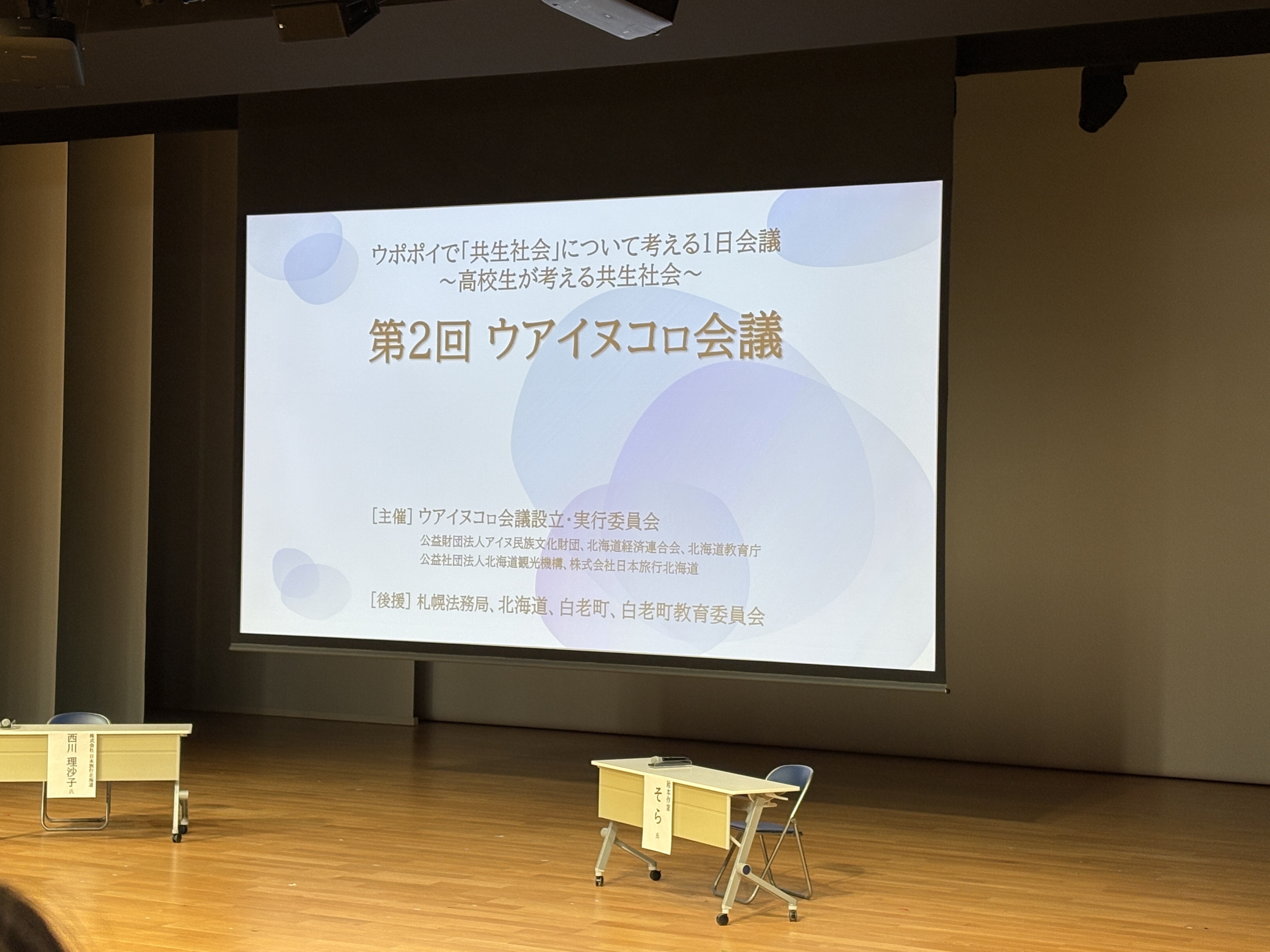「ウアイヌコロ」とは、アイヌ民族の言葉で「尊敬し合う」という意味です。会議では、アイヌ文化への理解にとどまらず、在日外国人、移民、留学生など、異なるバックボーンを持つ人々が互いの価値観を認め合い、共にいきいきと暮らすにはどうすればよいかについて議論。「共生社会」を創造する担い手となるべく、真剣に取り組みました。